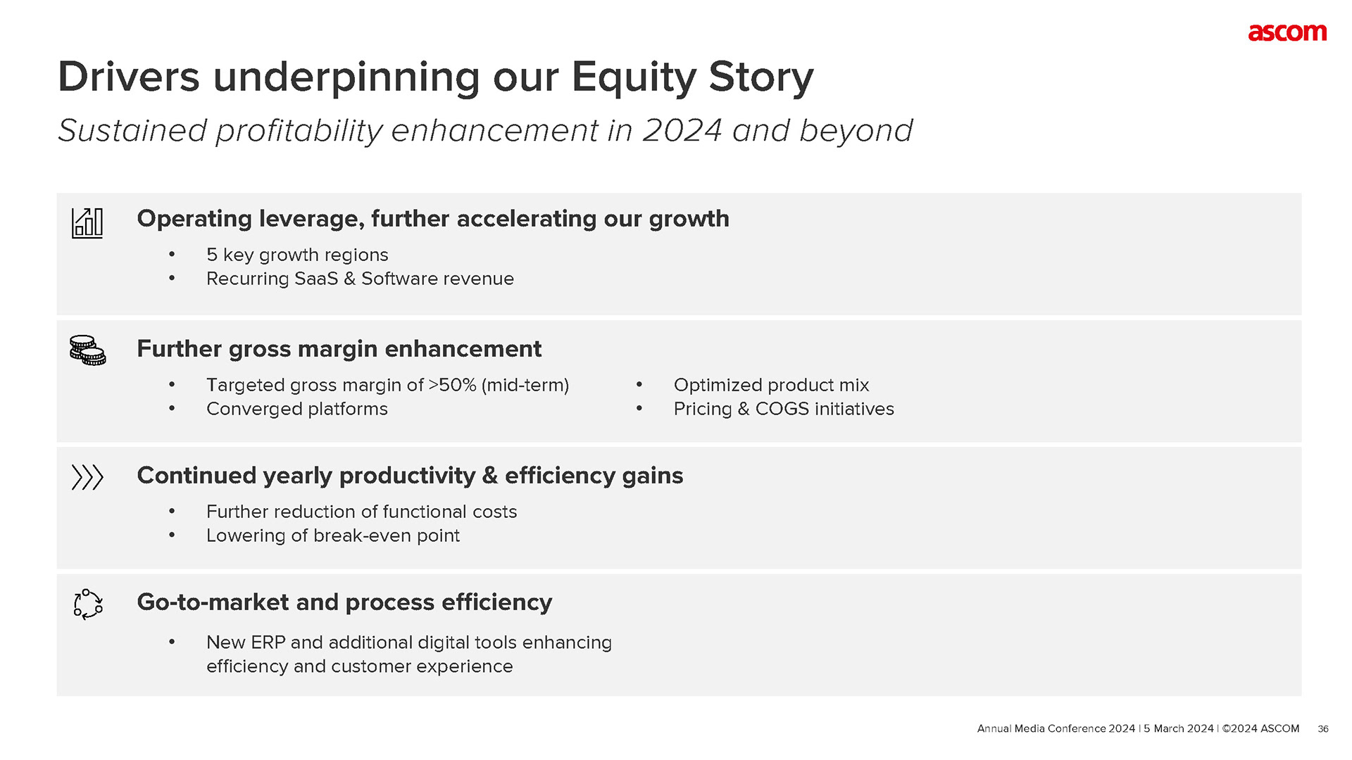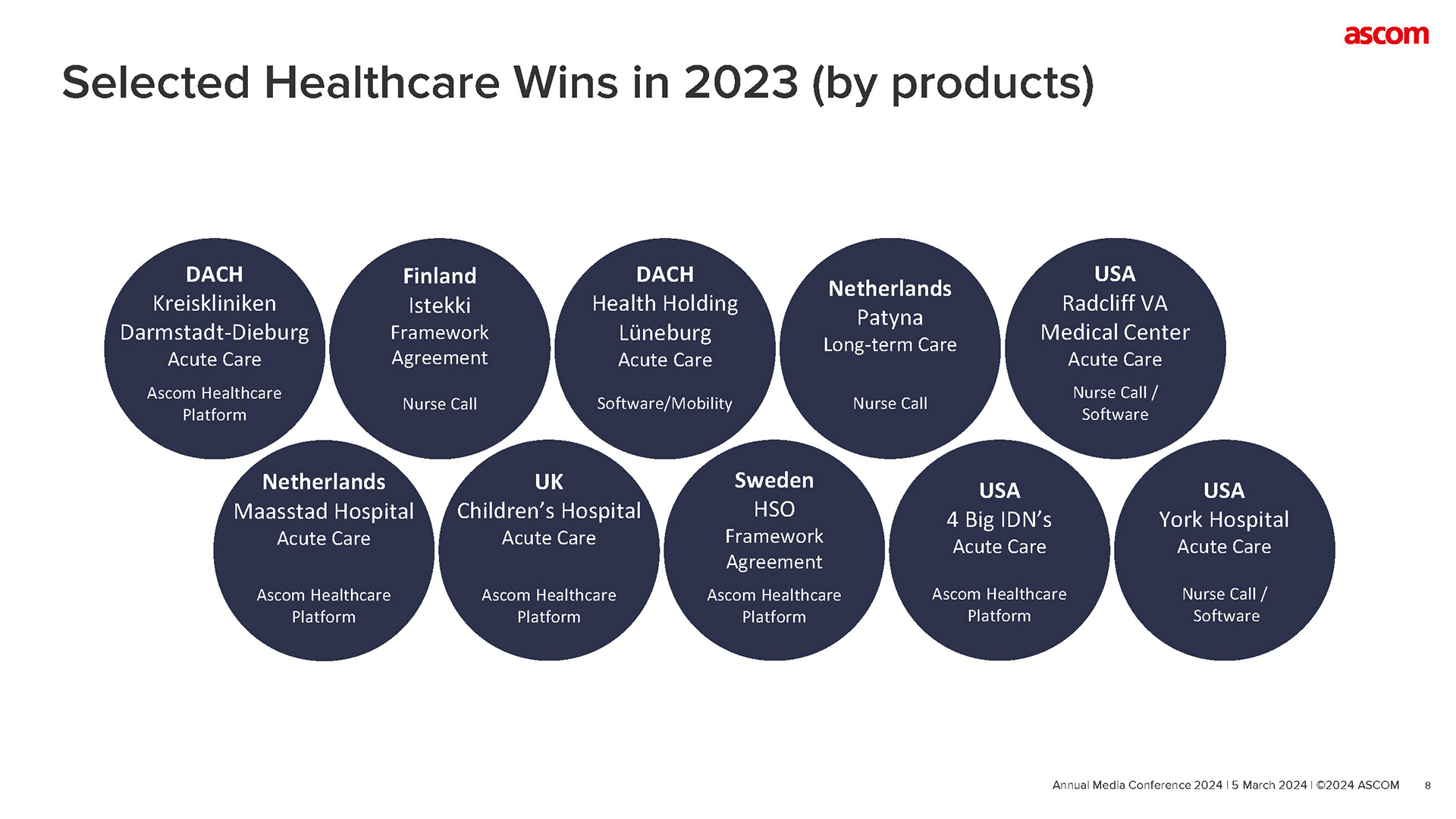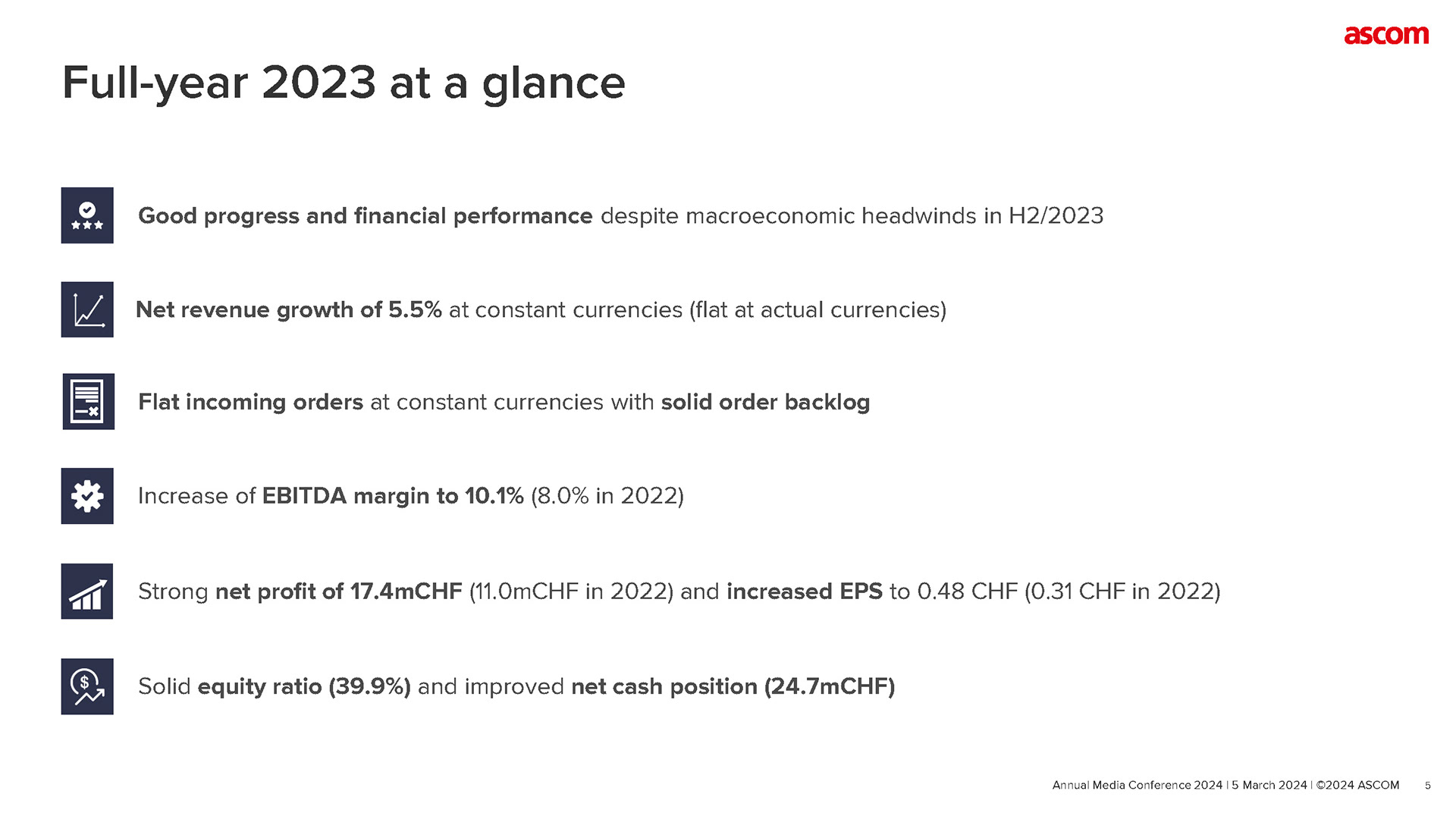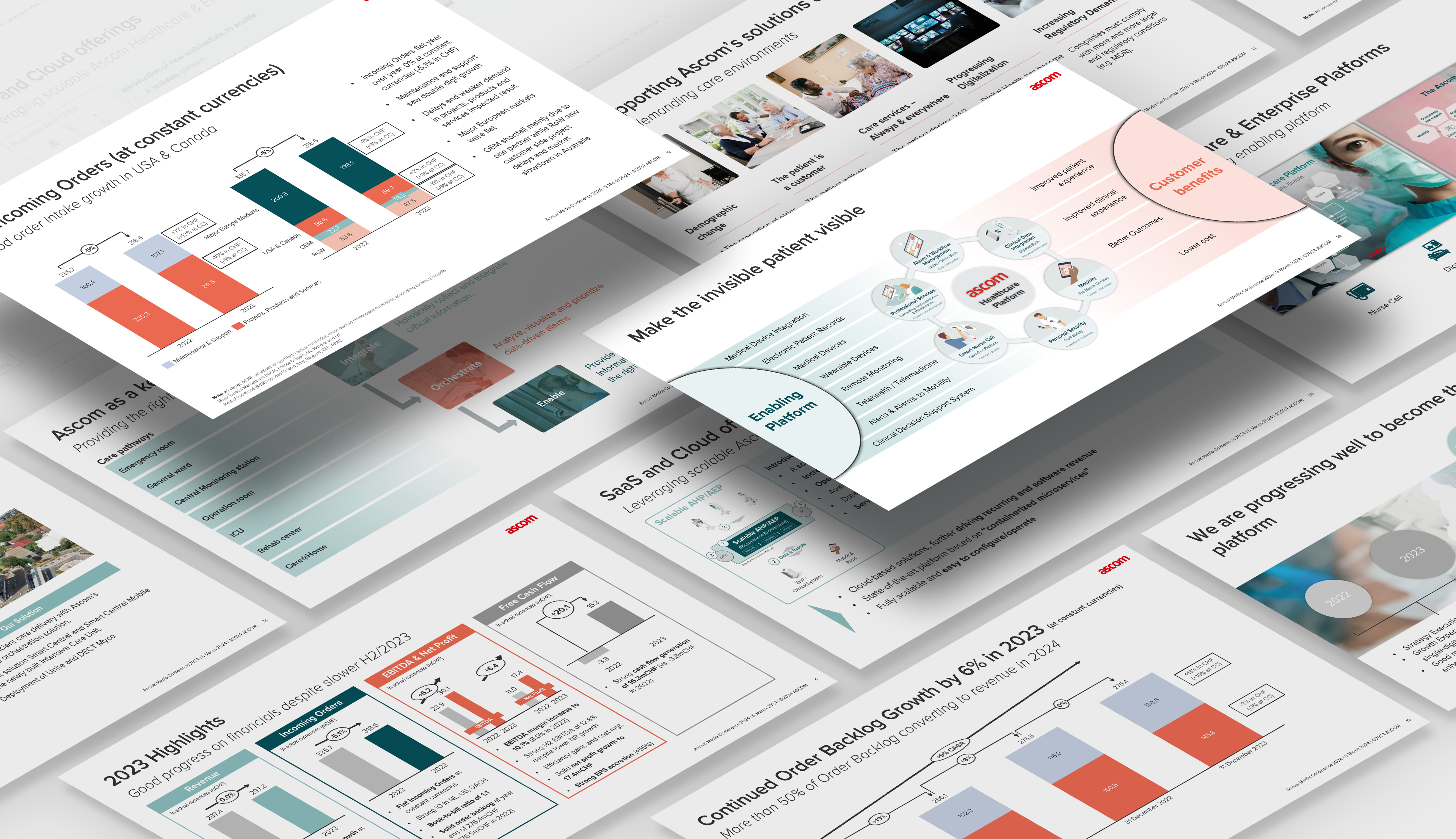 Design the Ascom Annual Report covering Full-Year 2023 highlights, Financial Review, Strategy & Business Updates, and Company Guidance—translating complex data into clear, presentation-ready insights for employees, investors, and media audiences.
