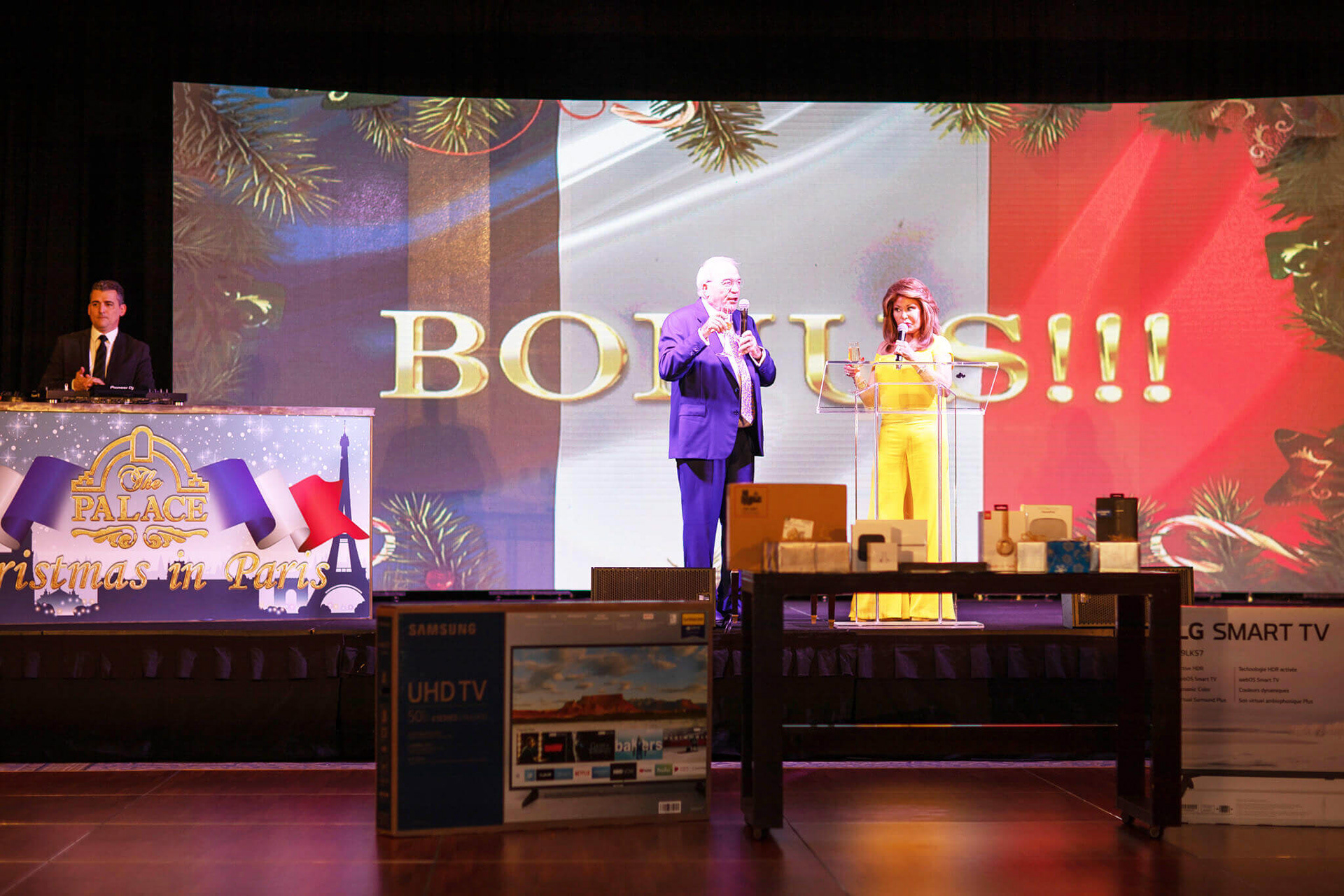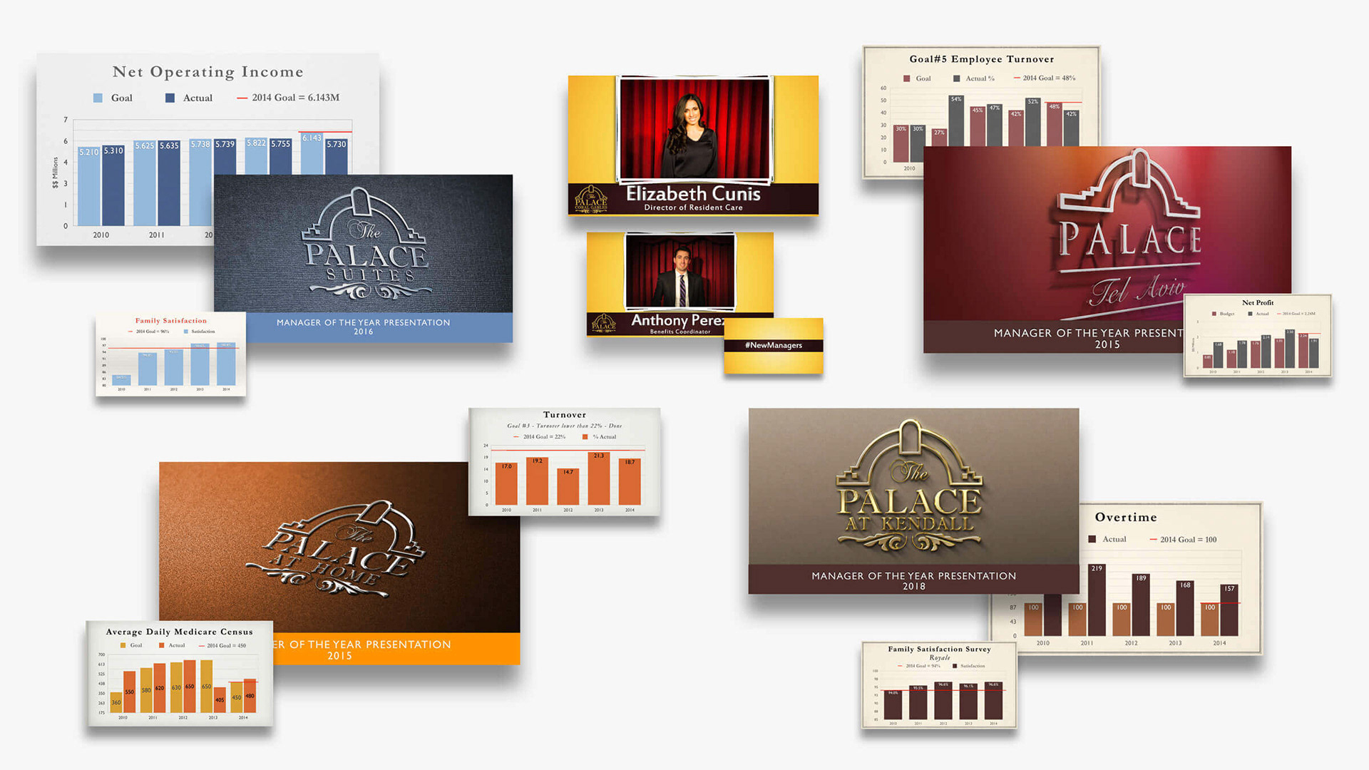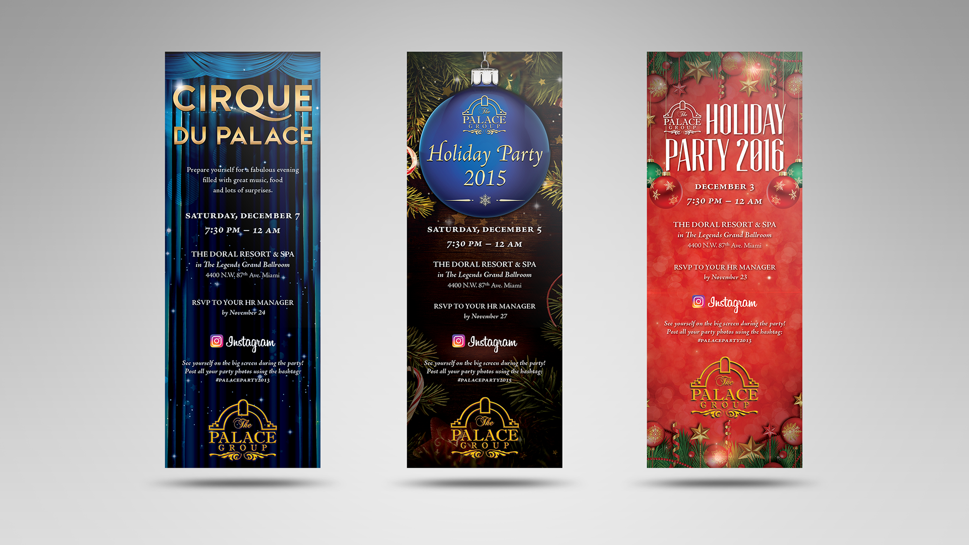 Overview: Three annual events for different levels of employees. The first, the manager of the year awards ceremony for managers and executives. The second, the corporation’s holiday party for all employees, and lastly, the end of the year gala for managers, executives, and VIPs.